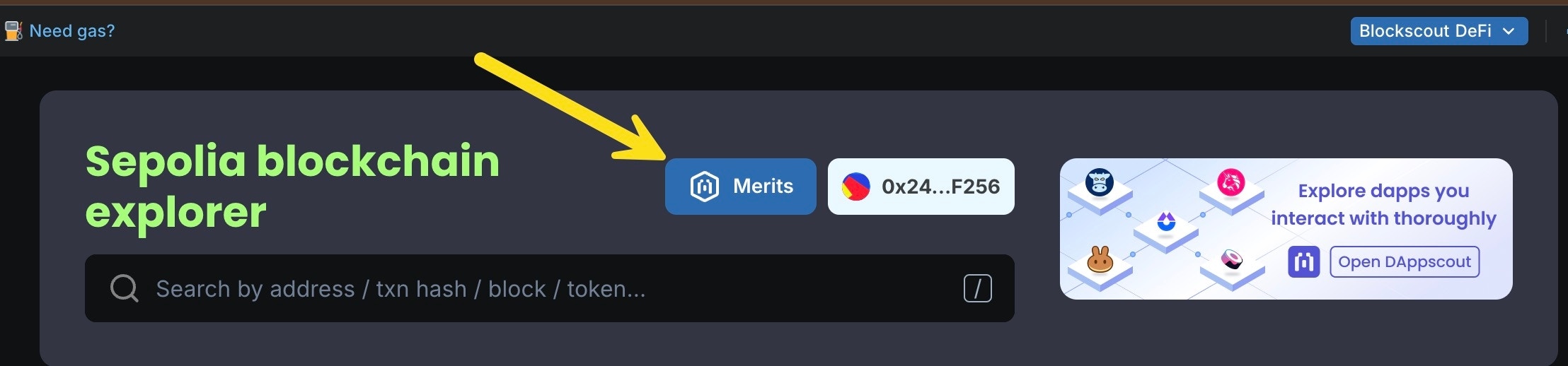- You must login to Merits on Blockscout to see your balance and claim additional Merits.